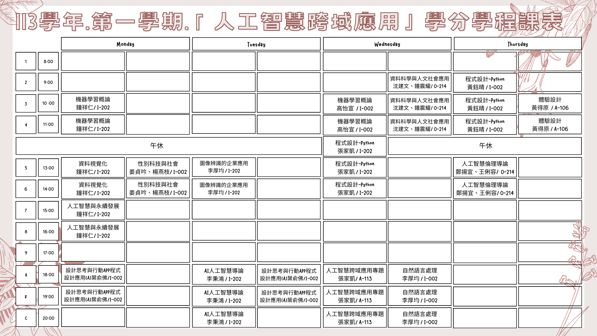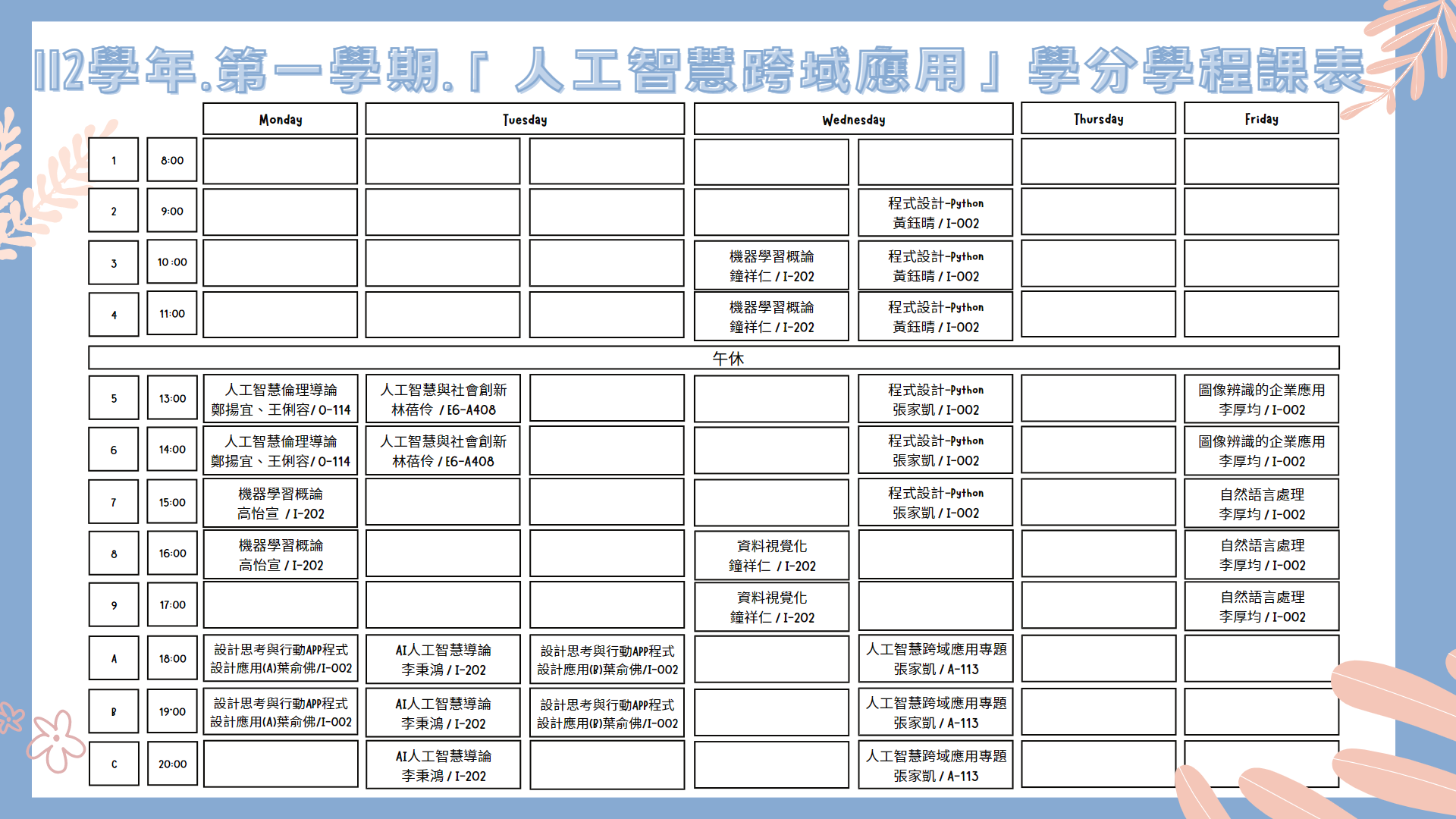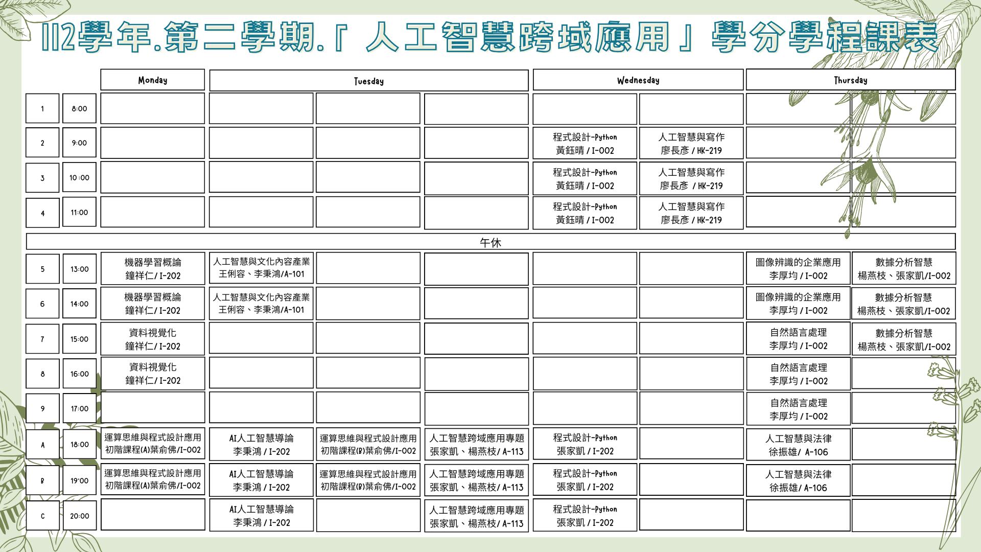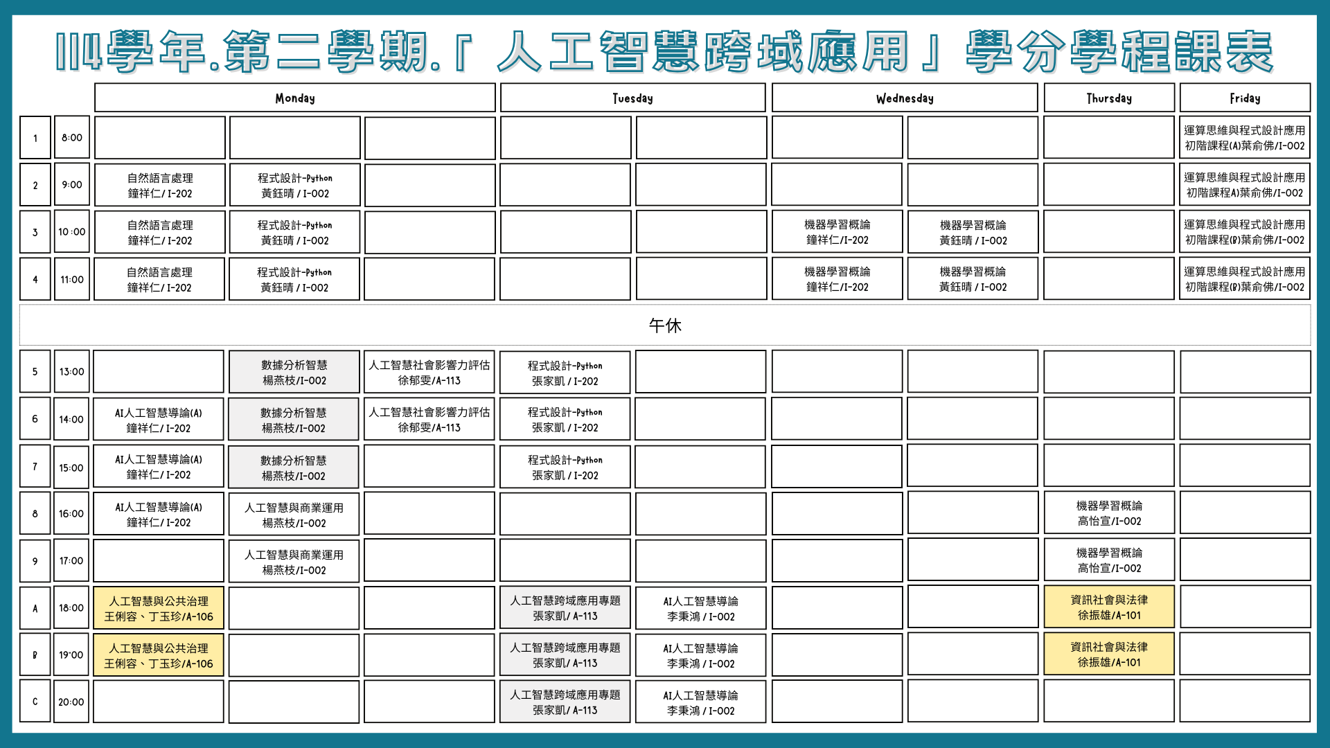 114年第二學期 「人工智慧跨域應用」學分學程課表✨