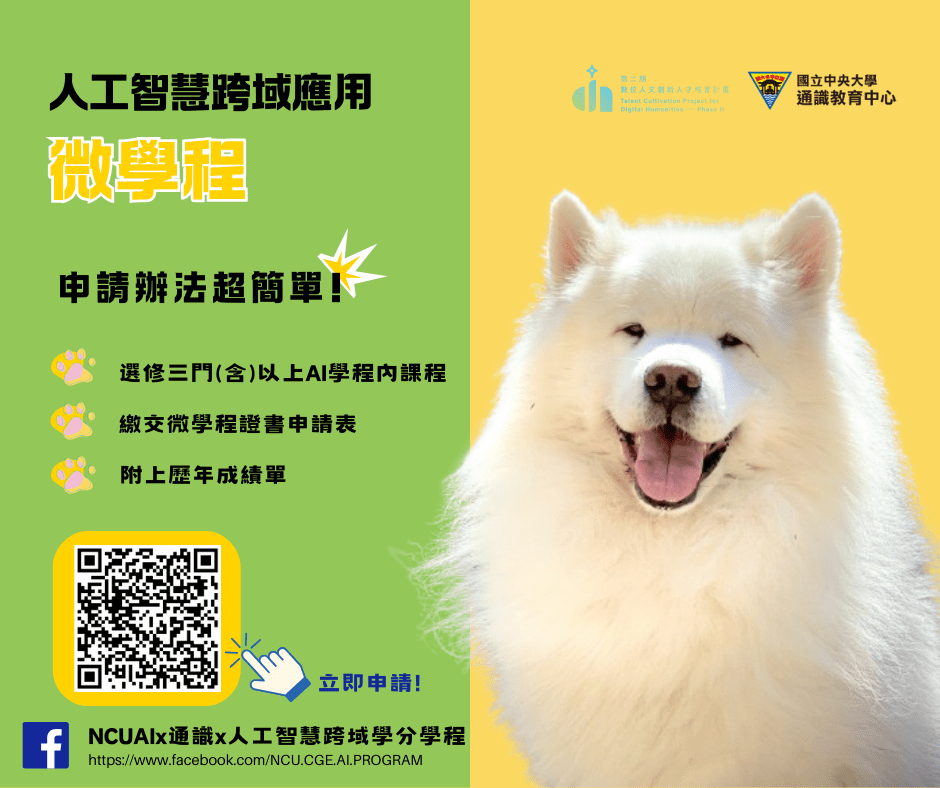 【立即申請】國立中央大學通識教育中心-AI 微學程申請表