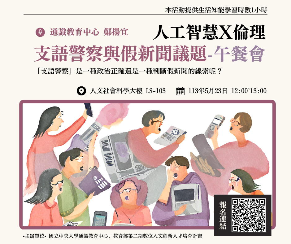 ChatGPT問世之後,我們越來越仰賴於人機協作,透過AI技術主動學習、提升效率與創造力。然而,我們要如何確保資訊的正確性?又該如何查證、如何檢驗?本場演講將帶領同學一起思考人工智慧對媒體互動的改變,以及對於資訊解讀方式,以免落入假訊息的陷阱之中!