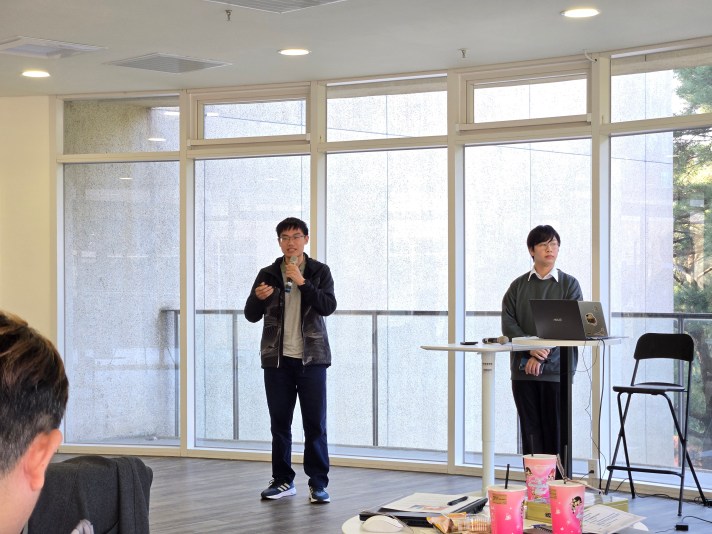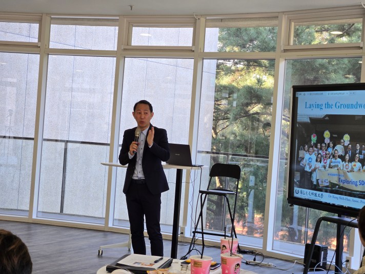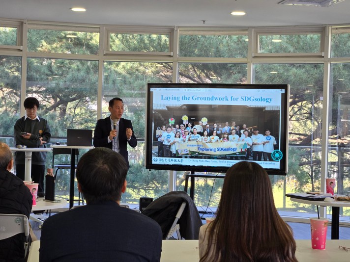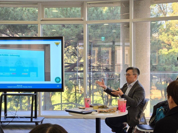 虎尾科大資管系柯棋升與資工系張心䛡也分享「SDGs導向的跨領域教育:實踐永續發展素養」成果,從全球化與科技視角出發,思考當代數位工具如何促進跨文化理解,展現學生在跨領域課程中的深度反思與實踐力。